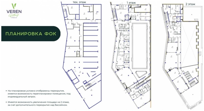 Площадь ком. помещений ФОКа - 1381.6 м2; Площадь ФОК включает площадь baby-клуба - 300.5 м2