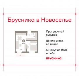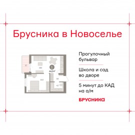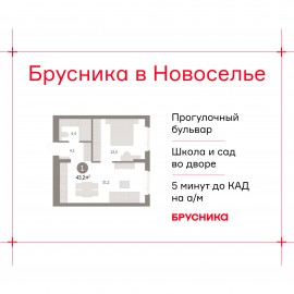 1-комн. квартира от застройщика с предчистовой отделкой в ЖК "Брусника в Новоселье" на 2 этаже. Общая площадь: 43.16 кв.м., жилая: 13.5 кв.м., площадь просторной кухни-столовой: 21.2 кв.м. Все окна выходят на одну сторону. В квартире один совмещенный санузел. Высота потолков 2.7 м. Дом...