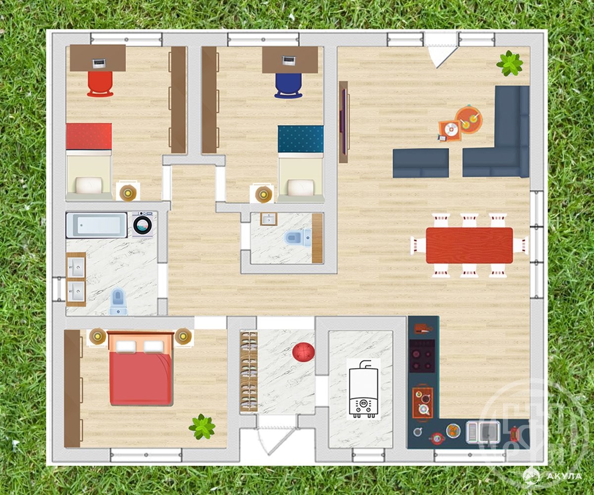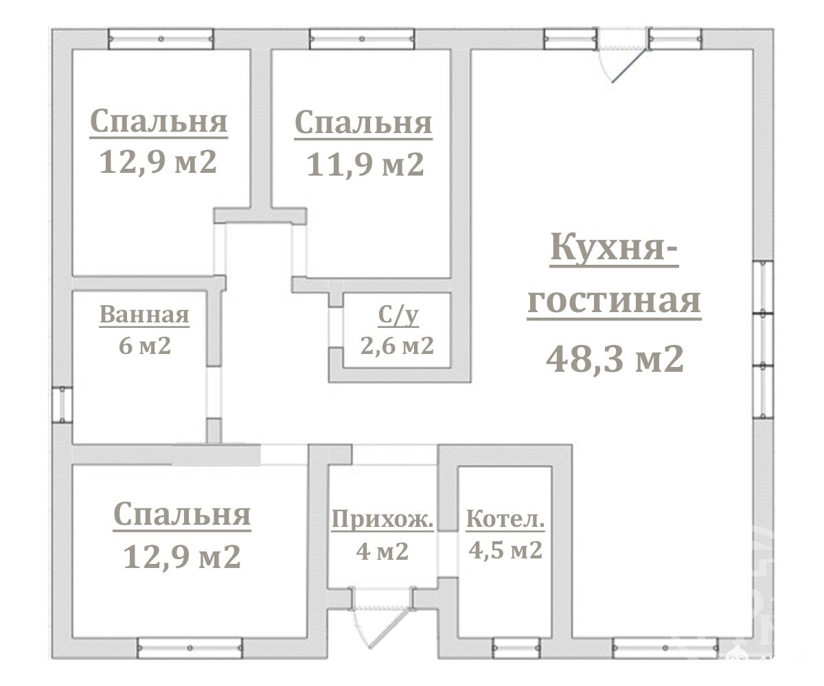 КУХНЯ-ГОСТИНАЯ 48, 3 м2, ТРИ СПАЛЬНИ и ДВА С/УЗЛА