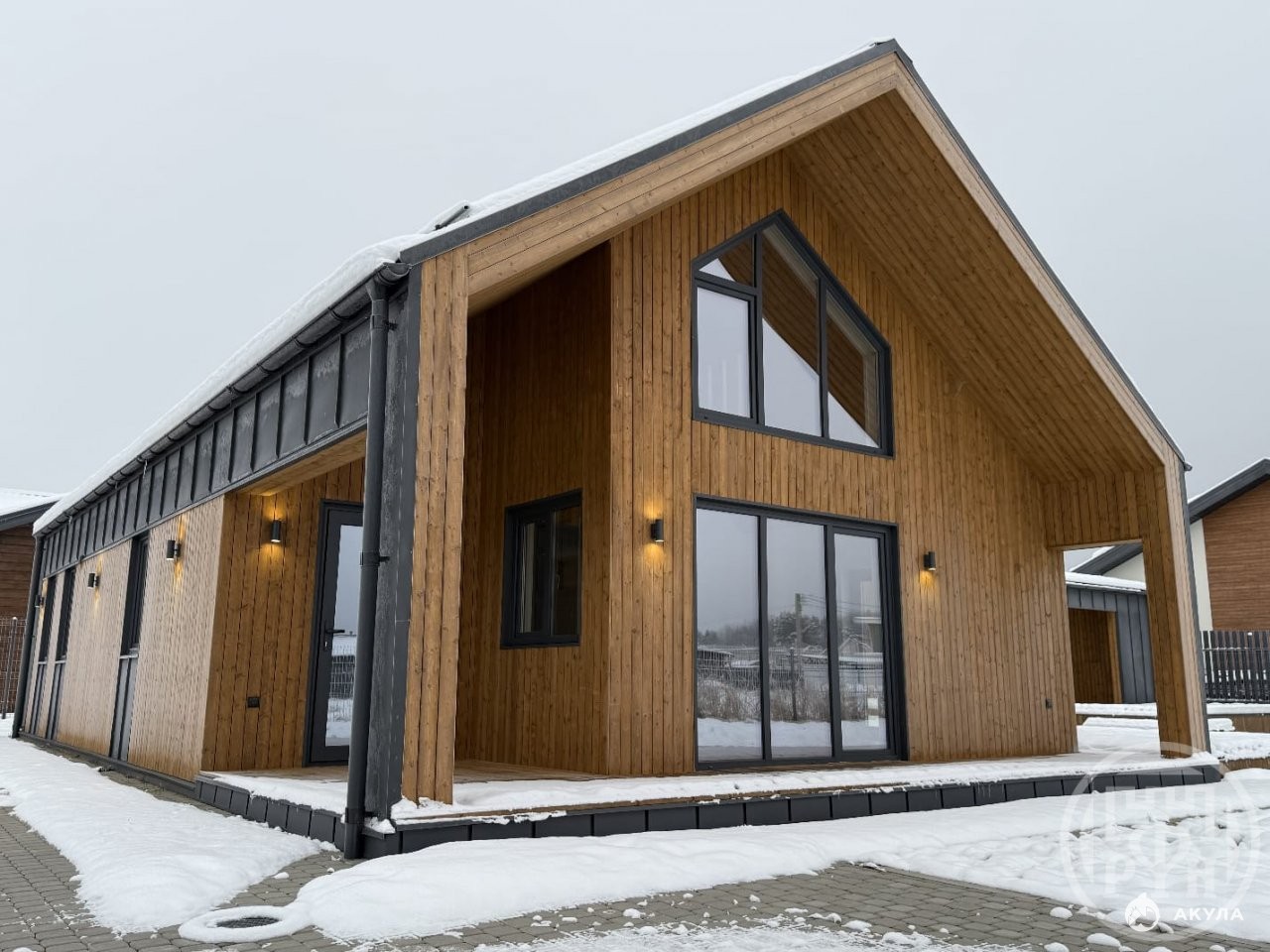№342240 Продается отличный новый дом на Троицкой горе KП `Уcaдьбa в Пeтeргофе`. Построен в современном стиле Барн. Полностью готов и ждет своего хозяина!