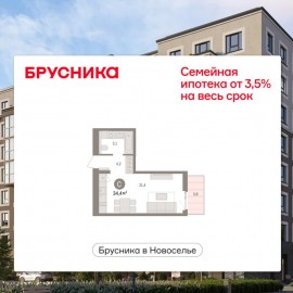 Успейте забронировать, пока действует скидка, срок акции ограничен! Стоимость квартиры указана со скидкой, ваша экономия составит 1, 010, 000 руб. Звоните, мы вам все подробно расскажем. Однокомнатная квартира-студия от застройщика с предчистовой отделкой в ЖК "Брусника в...