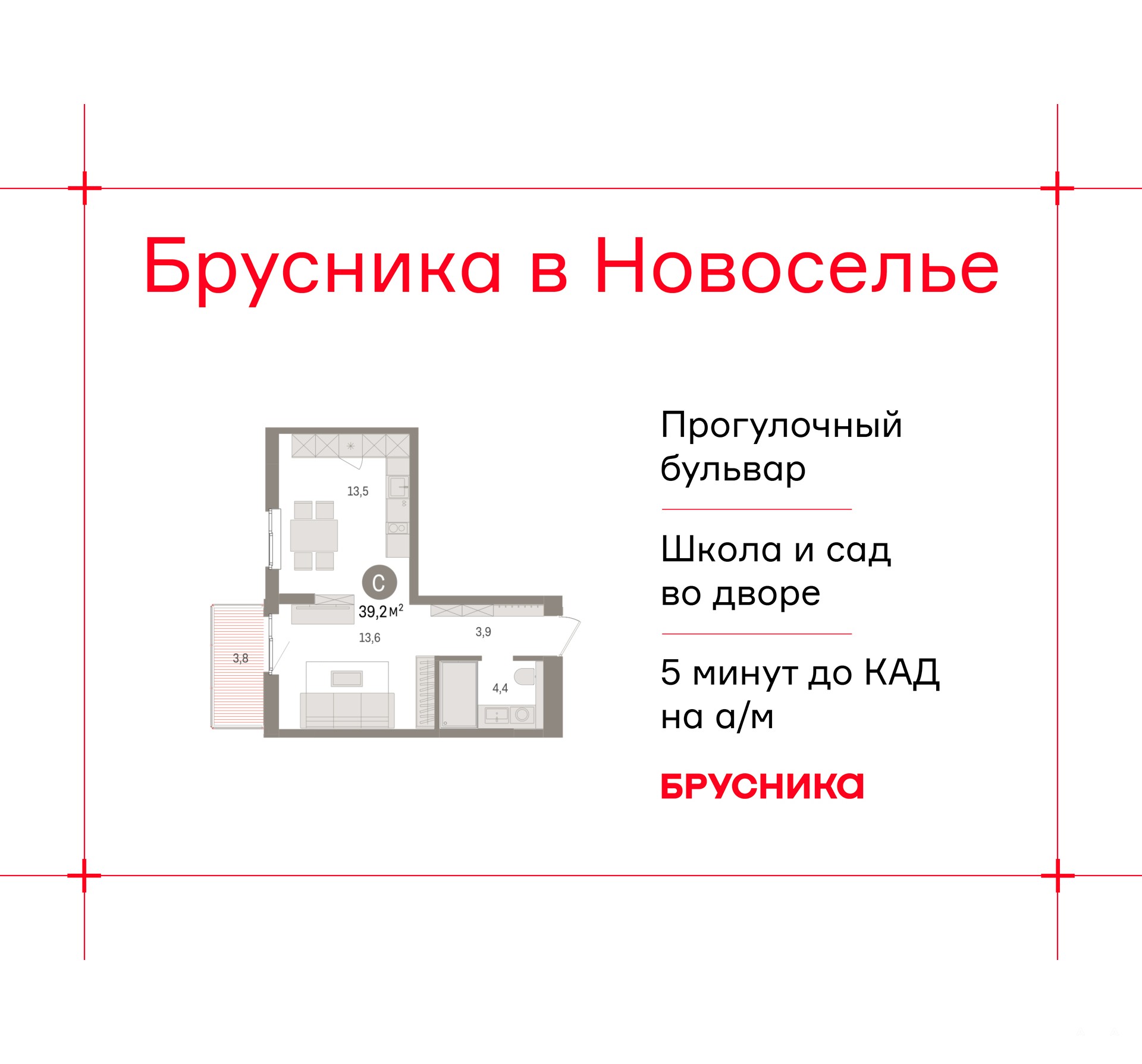 В основе архитектурной концепции «Брусники в Новоселье» лежит лаконичность силуэтов и внимание к деталям. Мы разработали три фасадные темы, в основе которых лежит один прием — вертикальные и горизонтальные членения, реализованные за счет остекления балконов и лоджий, переменной этажности и цветового дробления фасадов. Выразительность последних достигается за счёт симметрии и использования декоративных элементов — карнизов и рамок вокруг окон.