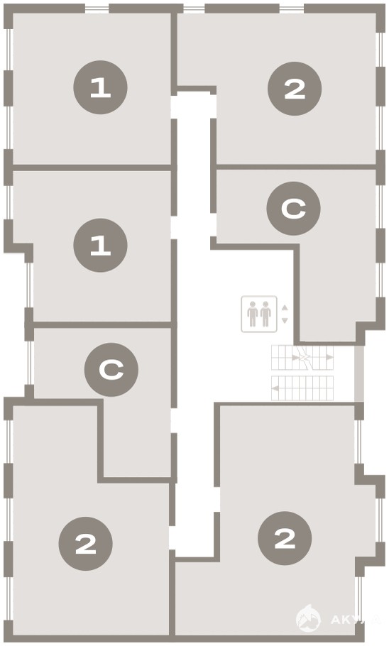 Кроме того, в проекте много террас, и все они разные: на первых этажах, на последних, угловые, с прямым фронтоном. Они расширяют пространство квартир и связывают их с природным контекстом. (AQID02548961)