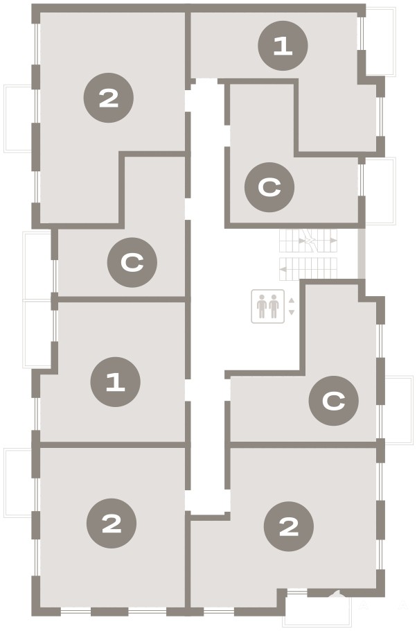Кроме того, в проекте много террас, и все они разные: на первых этажах, на последних, угловые, с прямым фронтоном. Они расширяют пространство квартир и связывают их с природным контекстом. (AQID02548981)