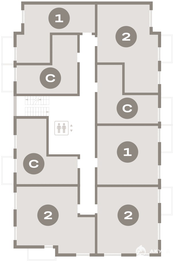 Кроме того, в проекте много террас, и все они разные: на первых этажах, на последних, угловые, с прямым фронтоном. Они расширяют пространство квартир и связывают их с природным контекстом. (AQID02551240)