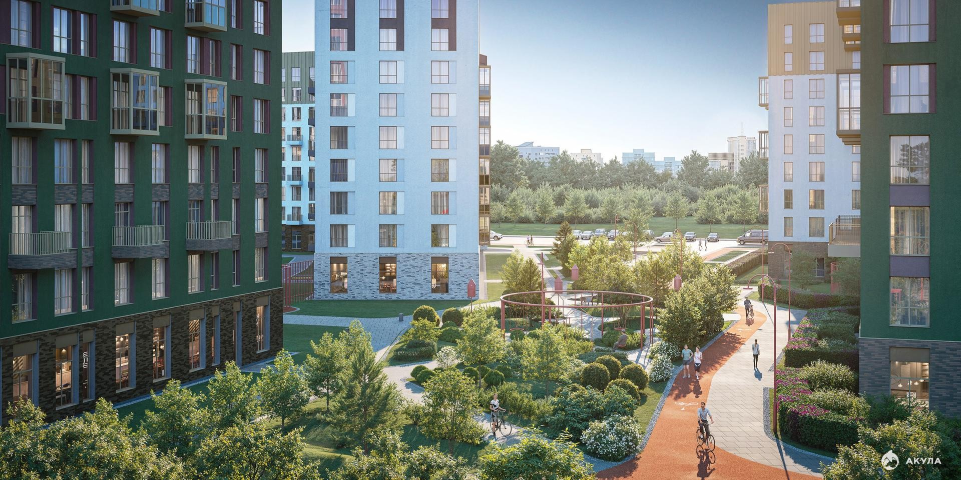 Занимайтесь йогой в воркаут-пространстве и бегайте по зеленому бульвару. Предусмотрели догхабы, площадь с амфитеатром и паркинги за пределами двора.