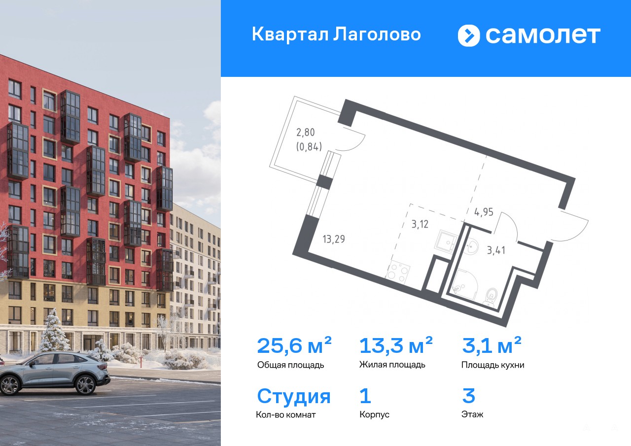 Строим кварталы для жизни с заботой о будущем. Предлагается квартира студия комфорт-класса 25, 61 кв.м в корпусе 1 на 3 этаже, в ЖК «Квартал Лаголово»