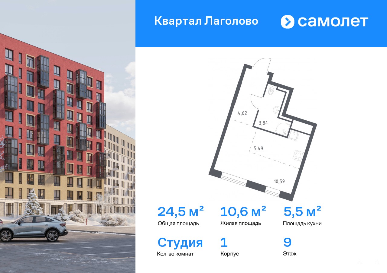 Строим кварталы для жизни с заботой о будущем. Предлагается квартира студия комфорт-класса 24, 54 кв.м в корпусе 1 на 9 этаже, в ЖК «Квартал Лаголово»