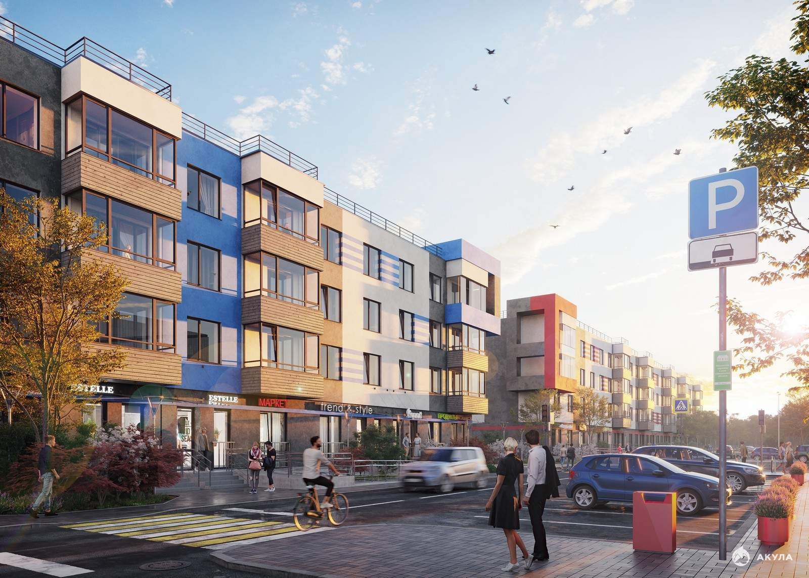 В 10-ти четырехэтажных корпусах сможет поселиться 1171 семья. Дома располагаются блоками, образуя уютные закрытые и безопасные дворы с большим количеством зеленых насаждений и с зонами отдыха для взрослых и детей.