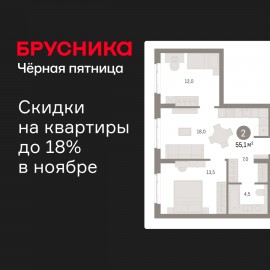 2/5 ПН, площадь 55, 5 кв.м, комнаты изолированные 16, 9+14, 9, кухня 8, 3, застекленная лоджия, СУР, просторная кладовая. <br>2 взрослых собственника. Альтернатива. <br>Арт. 123981115