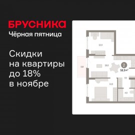 Двухкомнатная квартира от застройщика с предчистовой отделкой в ЖК "Брусника в Новоселье" на 8 этаже. Общая площадь: 58.85 кв.м., жилая: 25.5 кв.м., площадь просторной кухни-столовой: 18 кв.м. Комнаты изолированные, все окна выходят на одну сторону. В квартире один балкон, один...