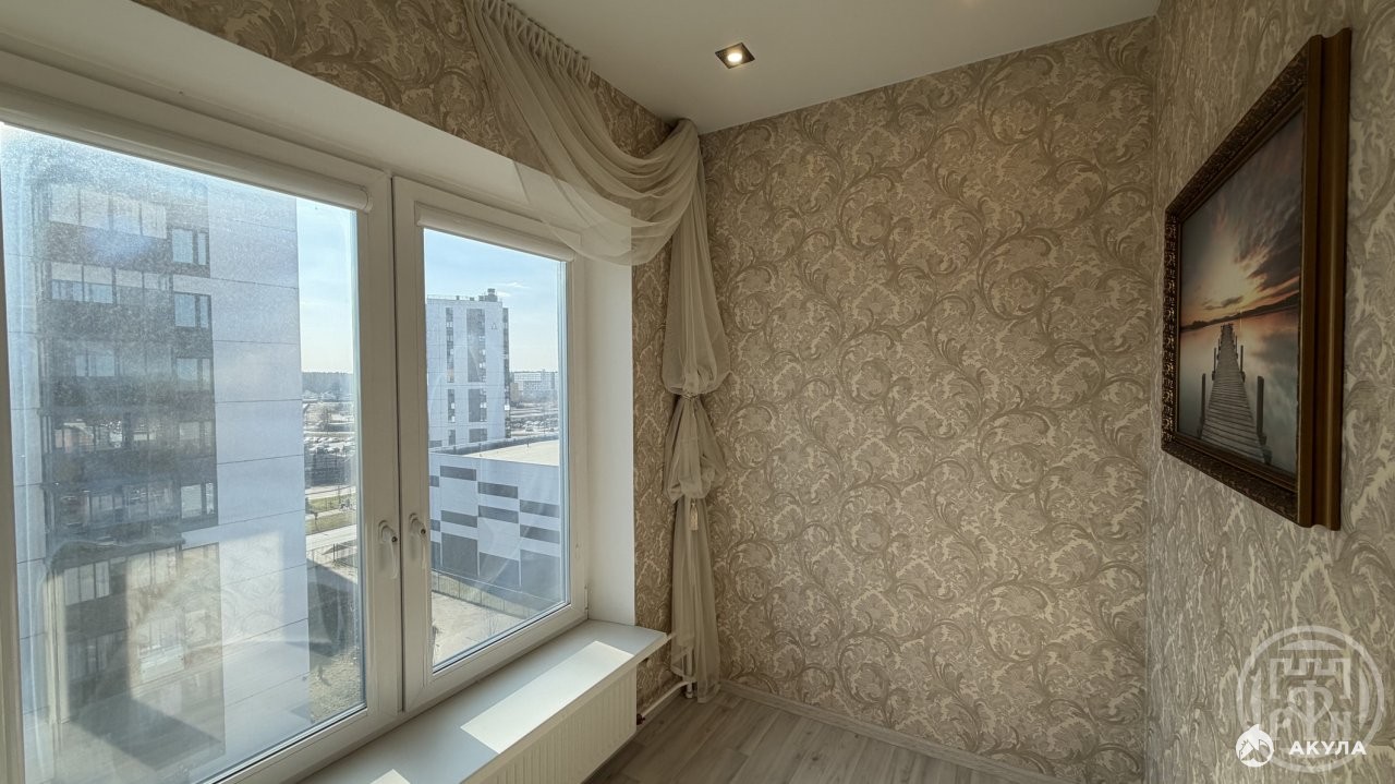 Одна из них, что поменьше (28 кв. м.), предназначена для жилья, в вашем распоряжении уже имеется совмещенный санузел, прихожая, отделенная от просторной комнаты с гармоничной отделкой, и панорамный балкон.