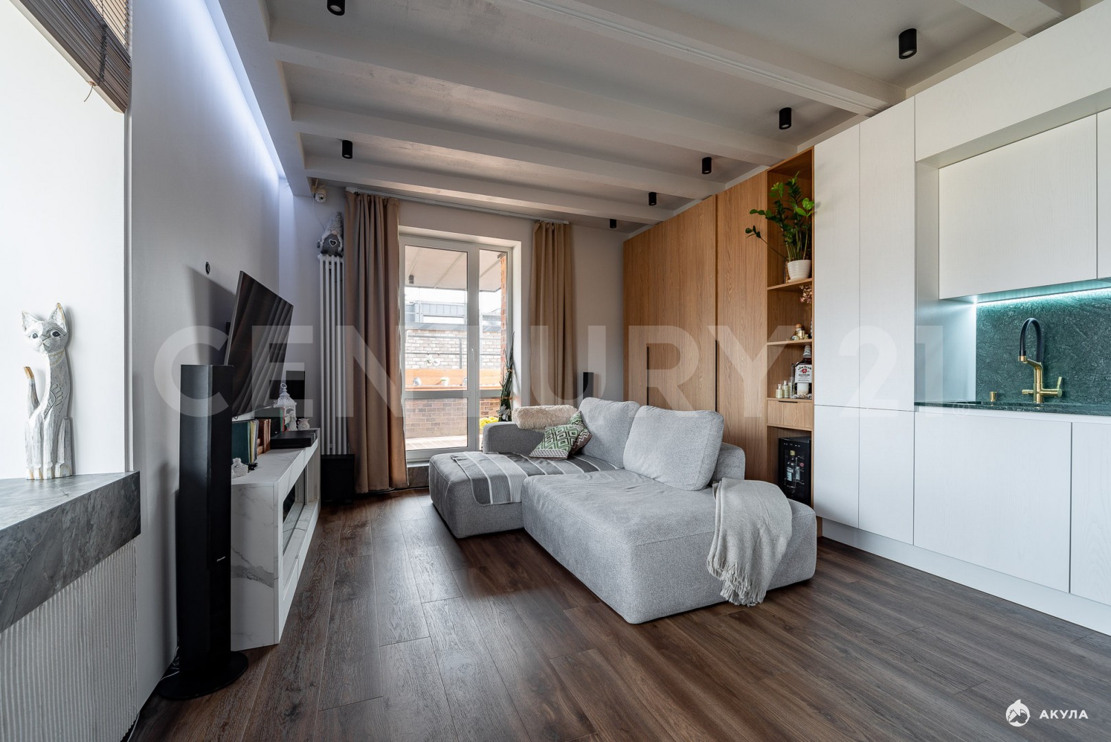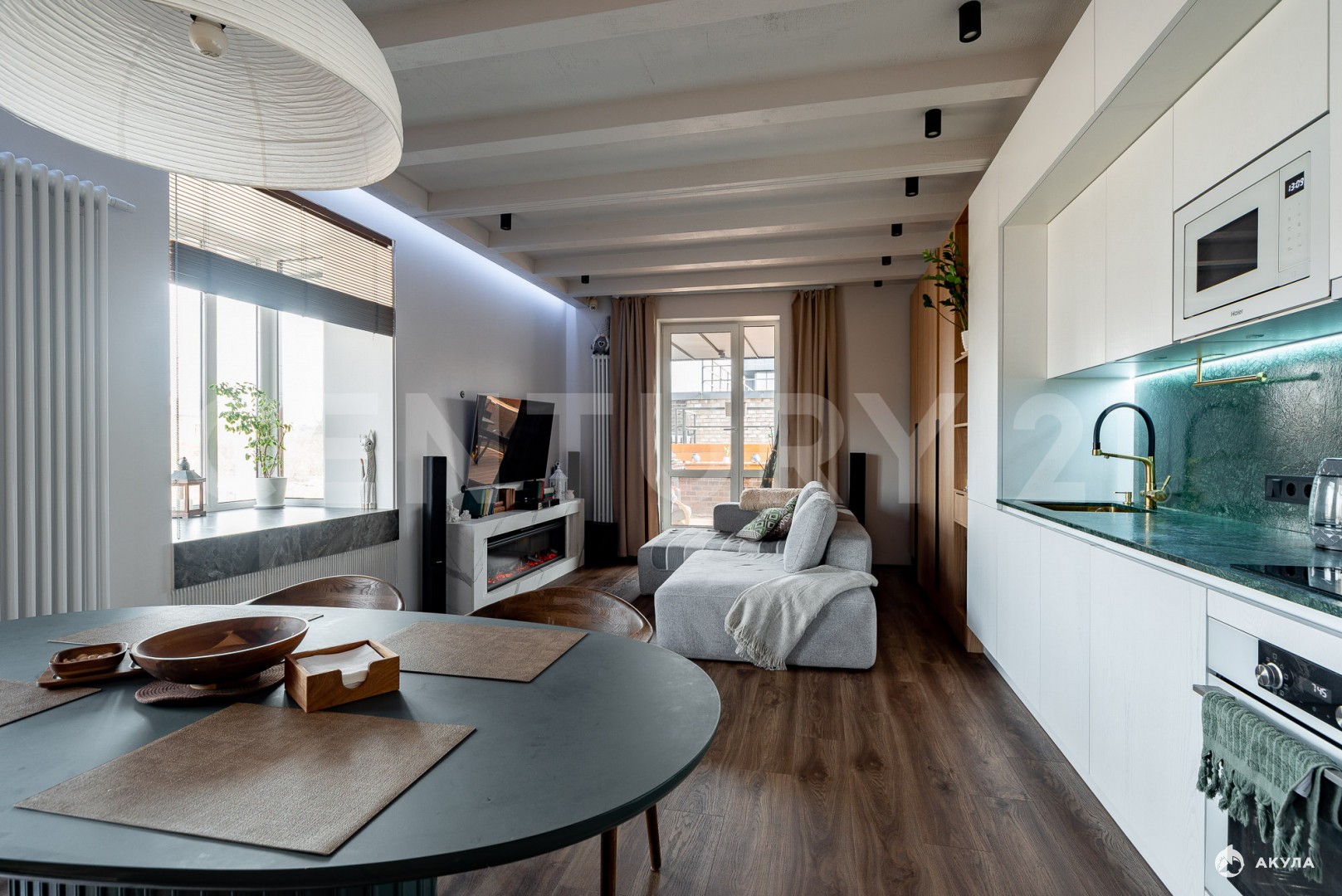 О квартире:Дизайнерский ремонт выполнен по дизайн-проекту, продумано все до мелочейОбщая площадь 55, 9 м2Вид из окон на две стороныВ просторной кухне-гостиной организована обеденная зона, зона отдыха и приготовления пищи, выход на большую террасу площадью 20 м2 с обзором на три стороныС террасы возможно подняться еще на уровень выше и отдохнуть на шезлонгах под летним солнцем (такой доступ есть у двух квартир)В квартире все подключено по системе "Умный дом"Новым собственникам останется все (заберем только кровать и телевизор)Дизайн-проект прилагается. При желании можно зонировать кухню-гостиную и получить полноценную двухкомнатную квартиру с отдельной кухней