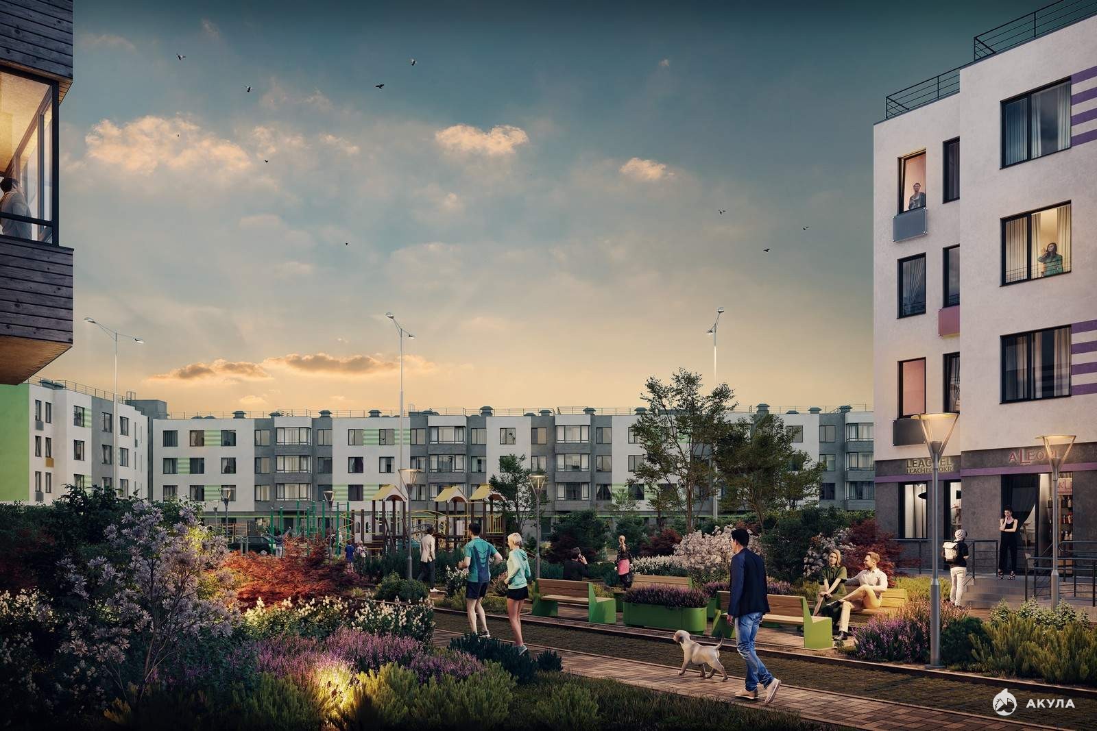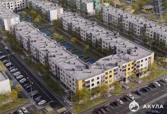 В 10-ти четырехэтажных корпусах сможет поселиться 1171 семья. Дома располагаются блоками, образуя уютные закрытые и безопасные дворы с большим количеством зеленых насаждений и с зонами отдыха для взрослых и детей.