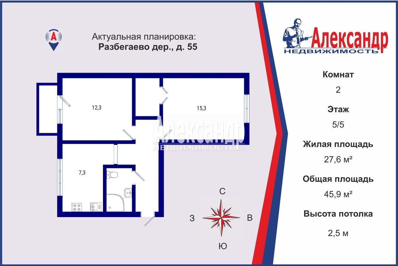 1701153 Предлагается к продаже двухкомнатная квартира в деревне Разбегаево Ломоносовского района. Квартира светлая, уютная, с большой кухней, изолированными комнатами, незастекленным балконом. В одной из комнат есть большая кладовка, из которой можно сделать гардеробную. В квартире установлены стеклопакеты, окна выходят на две стороны. Деревня с развитой инфраструктурой, есть все для комфортного проживания : детский сад, школа , Дом Культуры, магазины. Хорошая транспортная доступность. Встречная покупка.