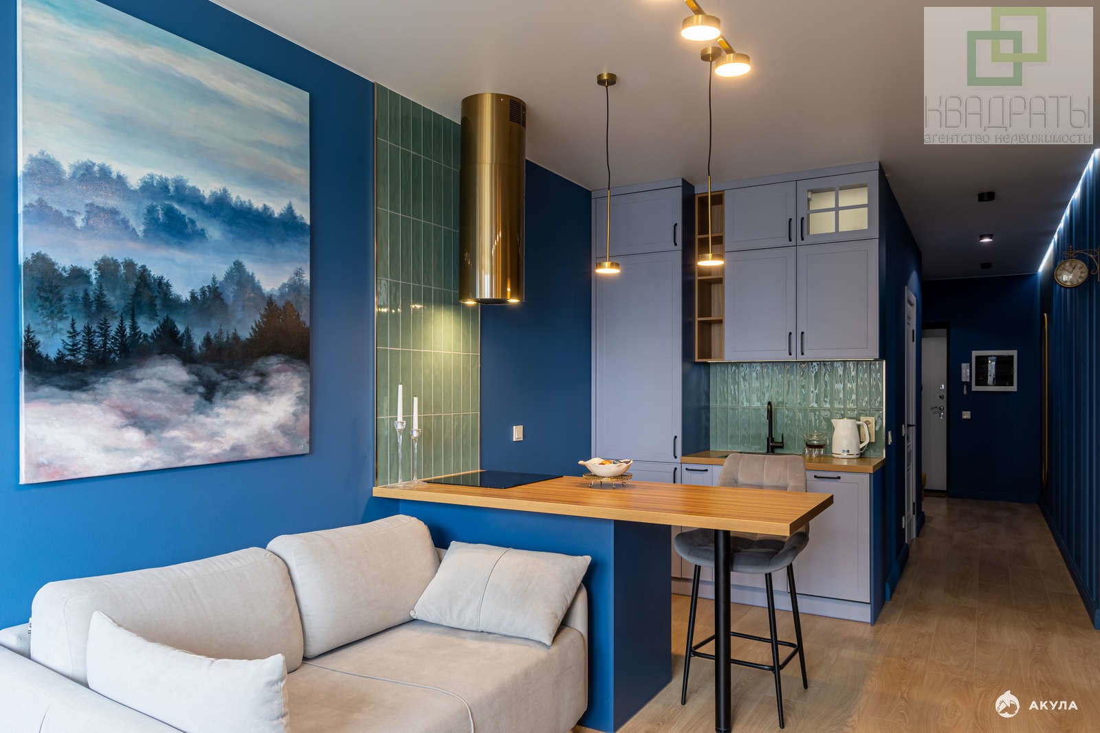 Квартира с дизайнерским ремонтом, всё продумано до мелочей. Отделка выполнена из высококачественных материалов. Натяжные матовые потолки, стильные обои, ламинат. Кроме основных источников света во всей квартире много дополнительного стильного освещения: бра, ленточная подсветка, точечные лампы.
