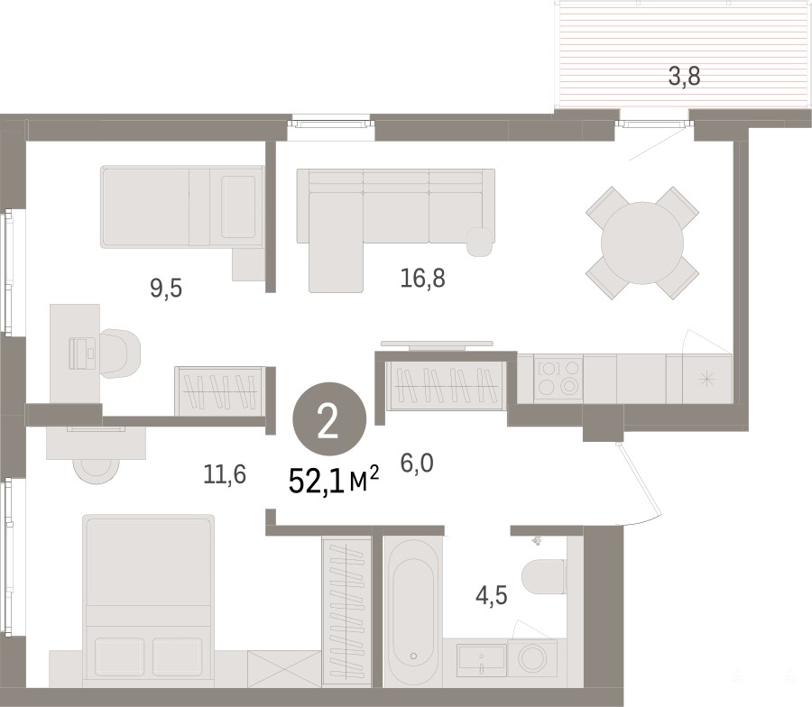 - 16.8 м²
