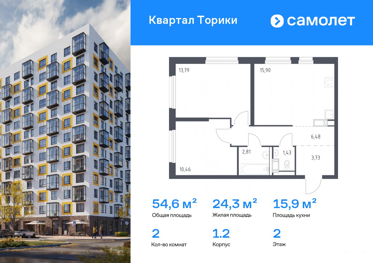 Строим кварталы для жизни с заботой о будущем. Предлагается 2-комнатная квартира комфорт-класса 54, 6 кв.м в корпусе 1.2 на 2 этаже, в ЖК «Квартал Торики»