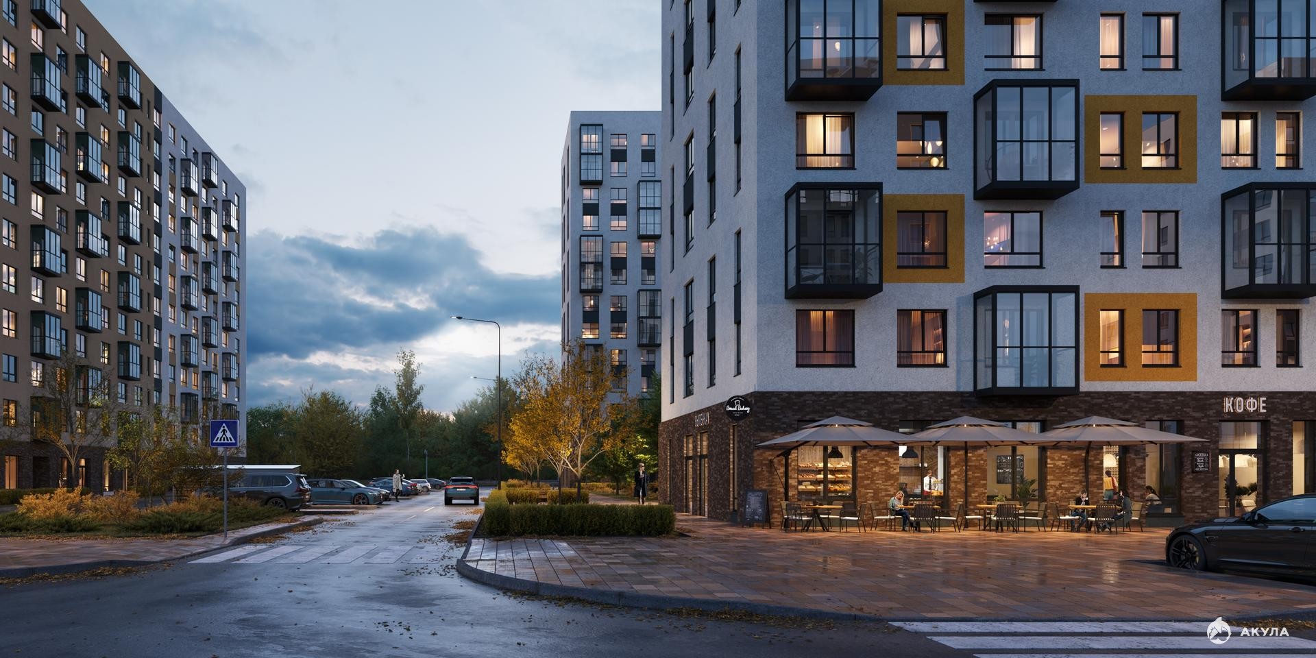 В квартале — школа и 2 детских сада. Утро можно начать в кофейне на первом этаже, а вечером — закупить продуктов.