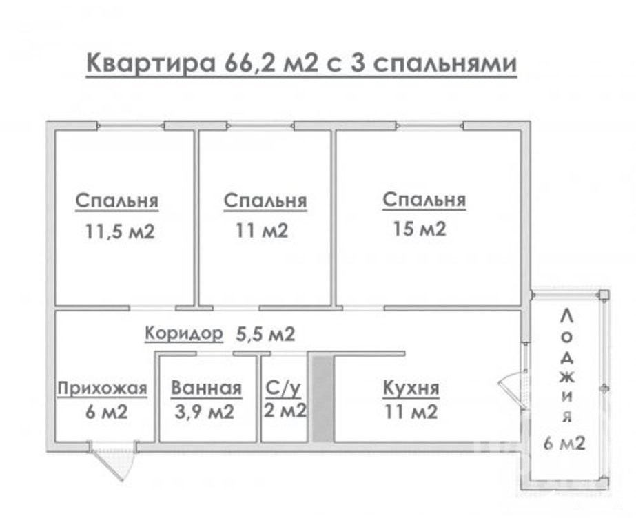 В квартире 3 спальни (15 м2, 11, 5 м2 и 11 м2), кухня 11 м2 с выходом на панорамную лоджию,