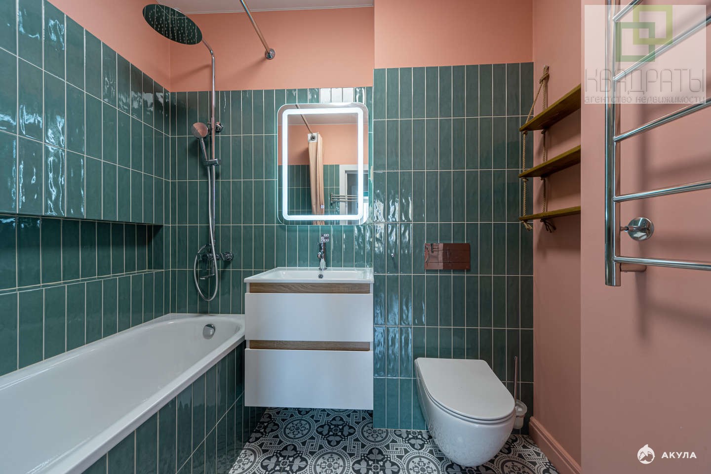 Квартира с дизайнерским ремонтом, всё продумано до мелочей. Отделка выполнена из высококачественных материалов. Натяжные матовые потолки, стильные обои, ламинат. Кроме основных источников света во всей квартире много дополнительного стильного освещения: бра, ленточная подсветка, точечные лампы.