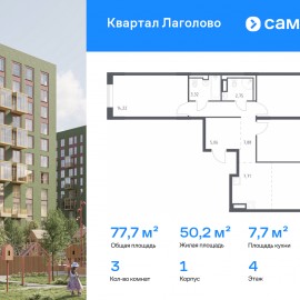 Строим кварталы для жизни с заботой о будущем. Предлагается 3-комнатная квартира комфорт-класса 77, 7 кв.м в корпусе 1 на 4 этаже, в ЖК «Квартал Лаголово» Квартира с предчистовой отделкой. Доступность дополнительных опций уточняйте у застройщика. Приобрести квартиру возможно...