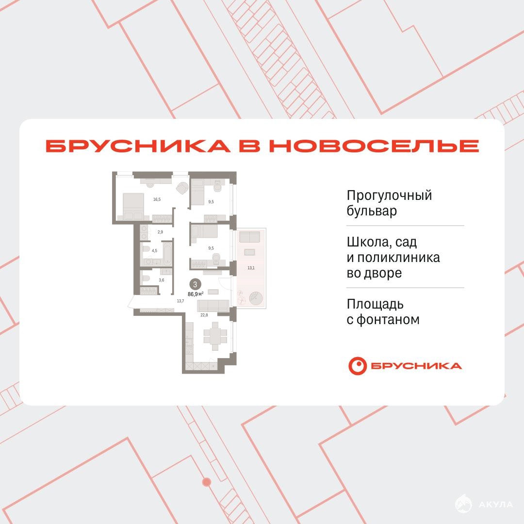 3-комн. квартира с предчистовой отделкой в ЖК "Брусника в Новоселье" на 1 этаже. Общая площадь: 96.09 кв.м., жилая: 35.5 кв.м., площадь просторной кухни-столовой: 22.8 кв.м. Угловая квартира, очень светлая, естественная вентиляция при открытии окон. В квартире один балкон, один совмещенный и один раздельный санузел. Высота потолков 2.7 м.