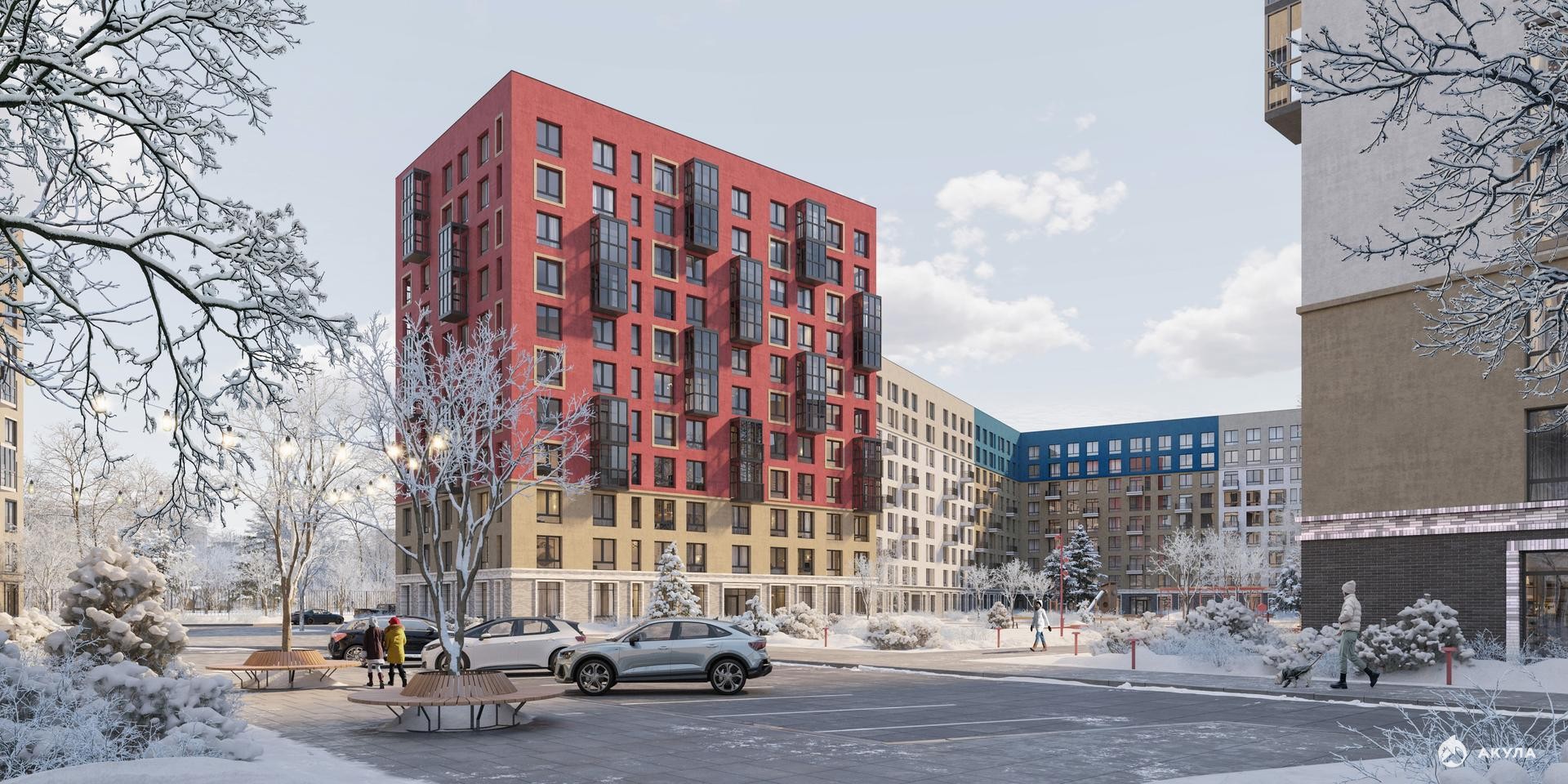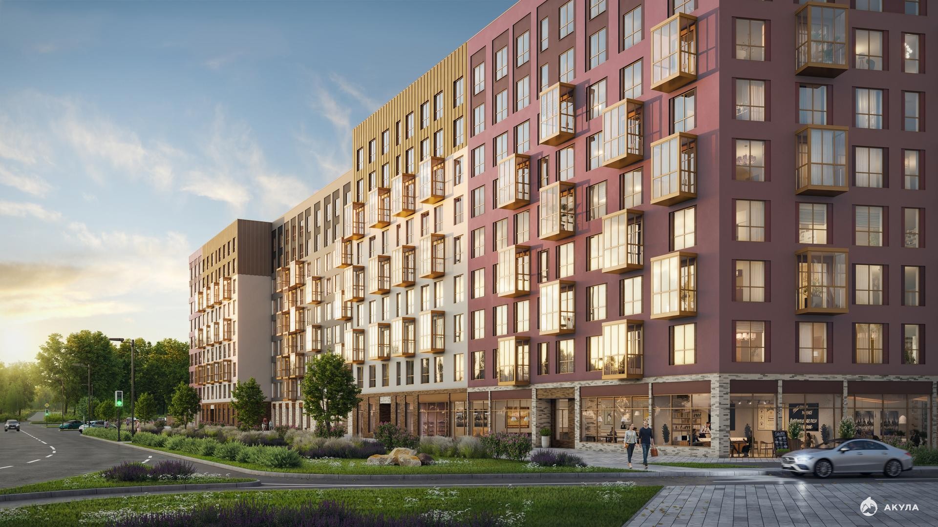 Дома высотой до 11 этажей с панорамными балконами выполнены в скандинавском стиле.