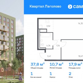 Строим кварталы для жизни с заботой о будущем. Предлагается 1-комнатная квартира комфорт-класса 37, 83 кв.м в корпусе 1 на 2 этаже, в ЖК «Квартал Лаголово» Квартира с предчистовой отделкой. Доступность дополнительных опций уточняйте у застройщика. Приобрести квартиру...