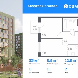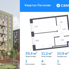 Строим кварталы для жизни с заботой о будущем. Предлагается 1-комнатная квартира комфорт-класса 33, 04 кв.м в корпусе 1 на 2 этаже, в ЖК «Квартал Лаголово» Квартира с предчистовой отделкой. Доступность дополнительных опций уточняйте у застройщика. Приобрести квартиру...