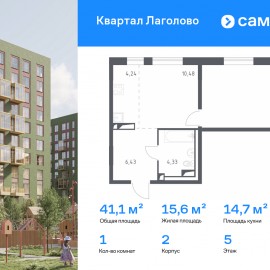 Строим кварталы для жизни с заботой о будущем. Предлагается 1-комнатная квартира комфорт-класса 41, 08 кв.м в корпусе 2 на 5 этаже, в ЖК «Квартал Лаголово» Квартира с чистовой отделкой. Доступность дополнительных опций уточняйте у застройщика. Приобрести квартиру возможно по...