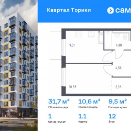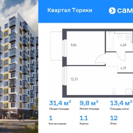 Строим кварталы для жизни с заботой о будущем. Предлагается 1-комнатная квартира комфорт-класса 31, 4 кв.м в корпусе 1.1 на 12 этаже, в ЖК «Квартал Торики» Квартира с предчистовой отделкой. Доступность дополнительных опций уточняйте у застройщика. Приобрести квартиру возможно...
