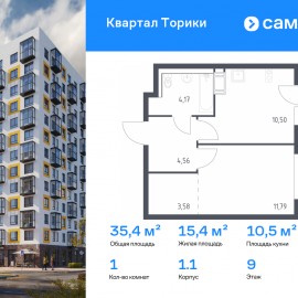 Строим кварталы для жизни с заботой о будущем. Предлагается 1-комнатная квартира комфорт-класса 35, 37 кв.м в корпусе 1.1 на 9 этаже, в ЖК «Квартал Торики» Квартира с чистовой отделкой. Доступность дополнительных опций уточняйте у застройщика. Приобрести квартиру возможно по...