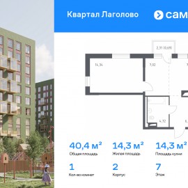 Строим кварталы для жизни с заботой о будущем. Предлагается 1-комнатная квартира комфорт-класса 40, 39 кв.м в корпусе 2 на 7 этаже, в ЖК «Квартал Лаголово» Квартира с чистовой отделкой. Доступность дополнительных опций уточняйте у застройщика. Приобрести квартиру возможно по...