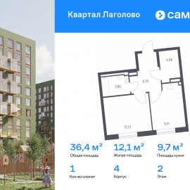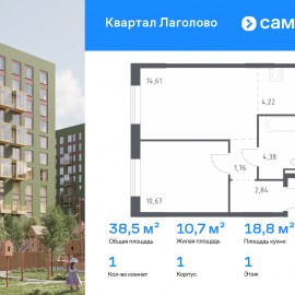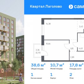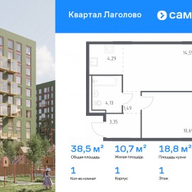 Строим кварталы для жизни с заботой о будущем. Предлагается 1-комнатная квартира комфорт-класса 38, 5 кв.м в корпусе 1 на 1 этаже, в ЖК «Квартал Лаголово» Квартира с предчистовой отделкой. Доступность дополнительных опций уточняйте у застройщика. Приобрести квартиру возможно...