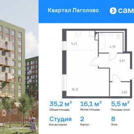 Строим кварталы для жизни с заботой о будущем. Предлагается квартира студия комфорт-класса 35, 22 кв.м в корпусе 2 на 8 этаже, в ЖК «Квартал Лаголово» Квартира с чистовой отделкой. Доступность дополнительных опций уточняйте у застройщика. Приобрести квартиру возможно по...