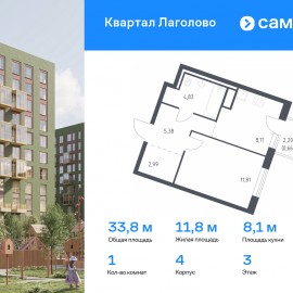 Строим кварталы для жизни с заботой о будущем. Предлагается 1-комнатная квартира комфорт-класса 33, 78 кв.м в корпусе 4 на 3 этаже, в ЖК «Квартал Лаголово» Квартира без отделки. Доступность опции «отделка» и возможность комплектации мебелью и декором уточняйте у...