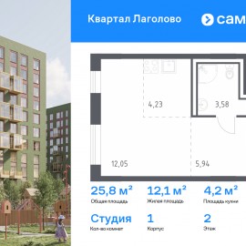 Строим кварталы для жизни с заботой о будущем. Предлагается квартира студия комфорт-класса 25, 8 кв.м в корпусе 1 на 2 этаже, в ЖК «Квартал Лаголово» Квартира с предчистовой отделкой. Доступность дополнительных опций уточняйте у застройщика. Приобрести квартиру возможно по...