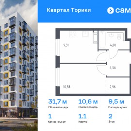Строим кварталы для жизни с заботой о будущем. Предлагается 1-комнатная квартира комфорт-класса 31, 69 кв.м в корпусе 1.1 на 2 этаже, в ЖК «Квартал Торики» Квартира с предчистовой отделкой. Доступность дополнительных опций уточняйте у застройщика. Приобрести квартиру возможно...