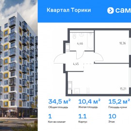 Строим кварталы для жизни с заботой о будущем. Предлагается 1-комнатная квартира комфорт-класса 34, 48 кв.м в корпусе 1.1 на 10 этаже, в ЖК «Квартал Торики» Квартира с предчистовой отделкой. Доступность дополнительных опций уточняйте у застройщика. Приобрести квартиру возможно...