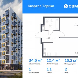 Строим кварталы для жизни с заботой о будущем. Предлагается 1-комнатная квартира комфорт-класса 34, 48 кв.м в корпусе 1.1 на 2 этаже, в ЖК «Квартал Торики» Квартира с предчистовой отделкой. Доступность дополнительных опций уточняйте у застройщика. Приобрести квартиру возможно...