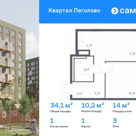 Строим кварталы для жизни с заботой о будущем. Предлагается 1-комнатная квартира комфорт-класса 34, 56 кв.м в корпусе 1 на 8 этаже, в ЖК «Квартал Лаголово» Квартира с предчистовой отделкой. Доступность дополнительных опций уточняйте у застройщика. Приобрести квартиру...