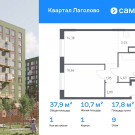 Строим кварталы для жизни с заботой о будущем. Предлагается 1-комнатная квартира комфорт-класса 38, 5 кв.м в корпусе 1 на 1 этаже, в ЖК «Квартал Лаголово» Квартира с предчистовой отделкой. Доступность дополнительных опций уточняйте у застройщика. Приобрести квартиру возможно...
