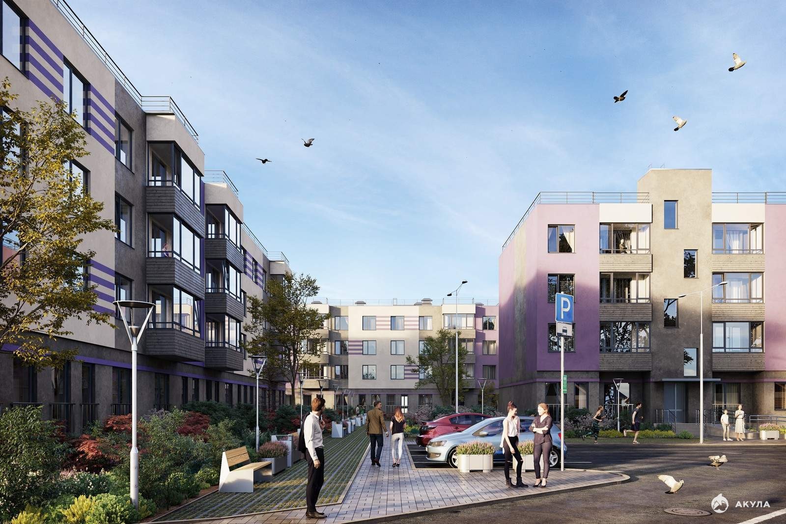 В 10-ти четырехэтажных корпусах сможет поселиться 1171 семья. Дома располагаются блоками, образуя уютные закрытые и безопасные дворы с большим количеством зеленых насаждений и с зонами отдыха для взрослых и детей.